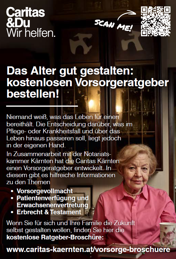 CARITAS - Das Alter gut gestalten: kostenlosen Vorsorgeratgeber bestellen!